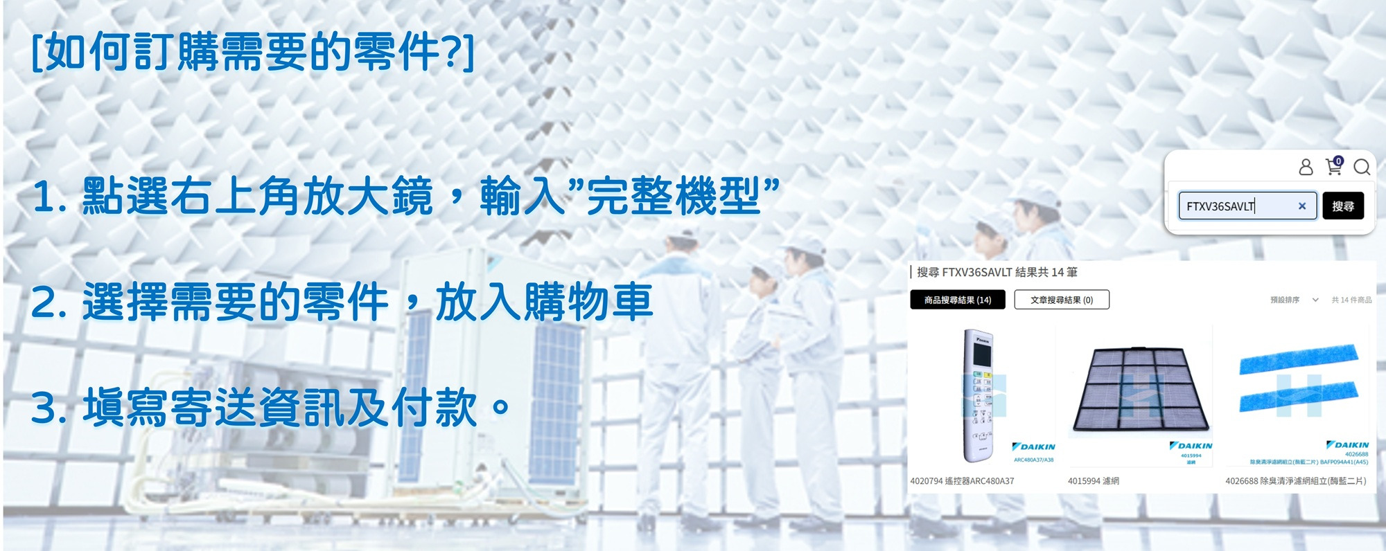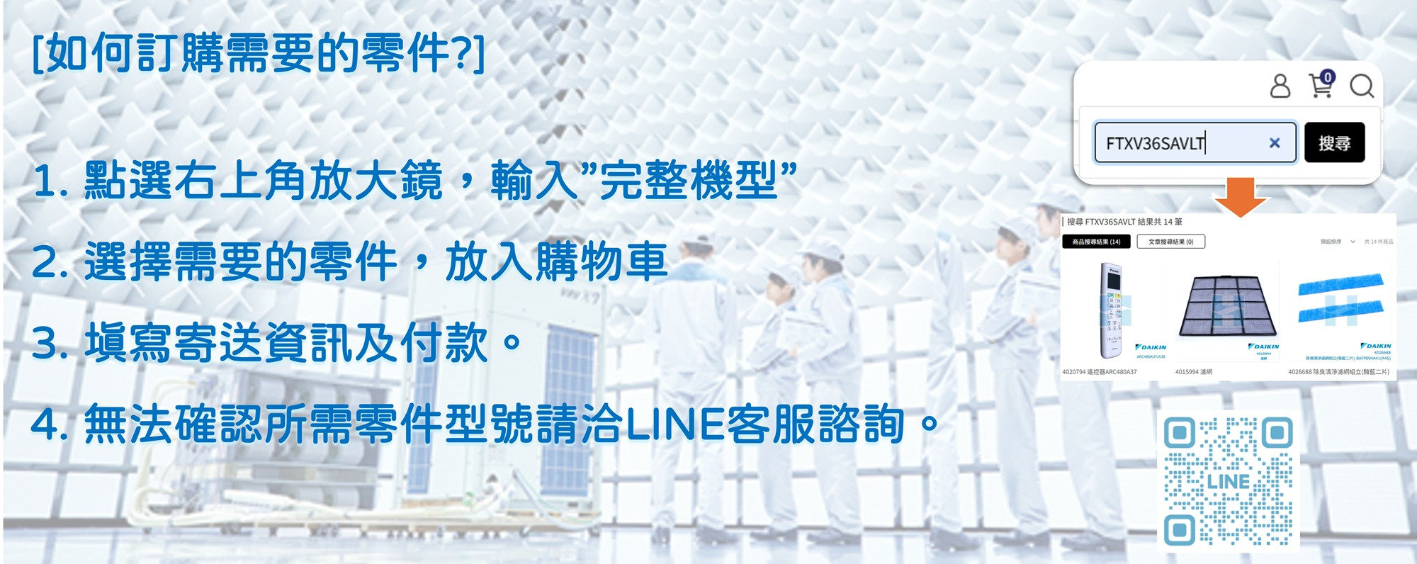 大金空調原廠零件耗材 | 請輸入完整機型查詢所需零件